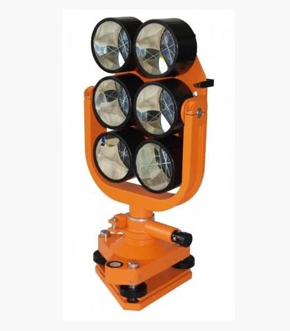 Отражательные системы используются для проведения работ с применением электронных тахеометров и светодальномеров. В зависимости от измеряемых расстояний используются системы с различным количеством призм. Шестипризменный отражатель предназначен для измерения больших дистанций. Как и однопризменный, шестипризменный отражатель используется для отражения модулированного излучения светодальномера.